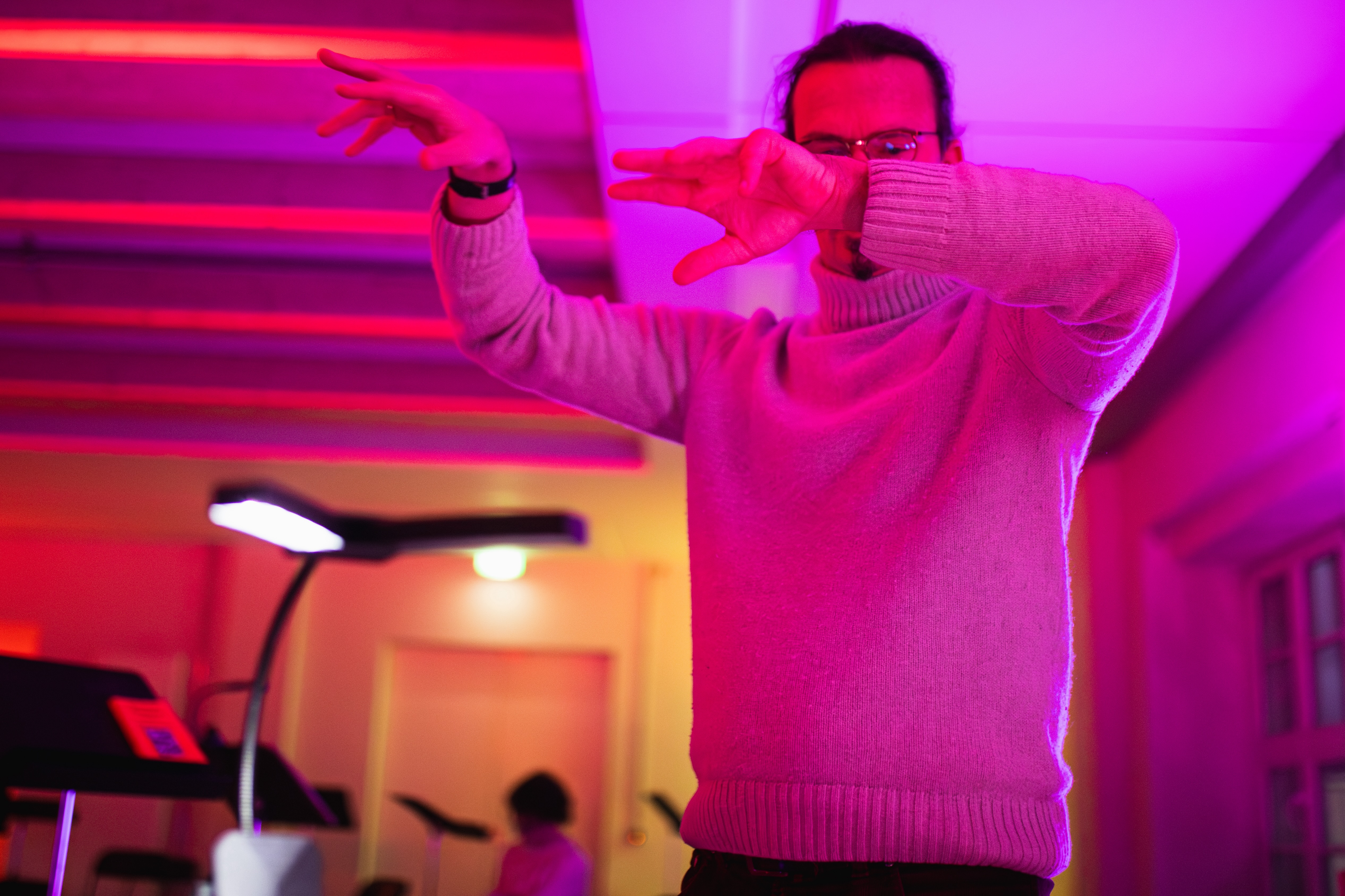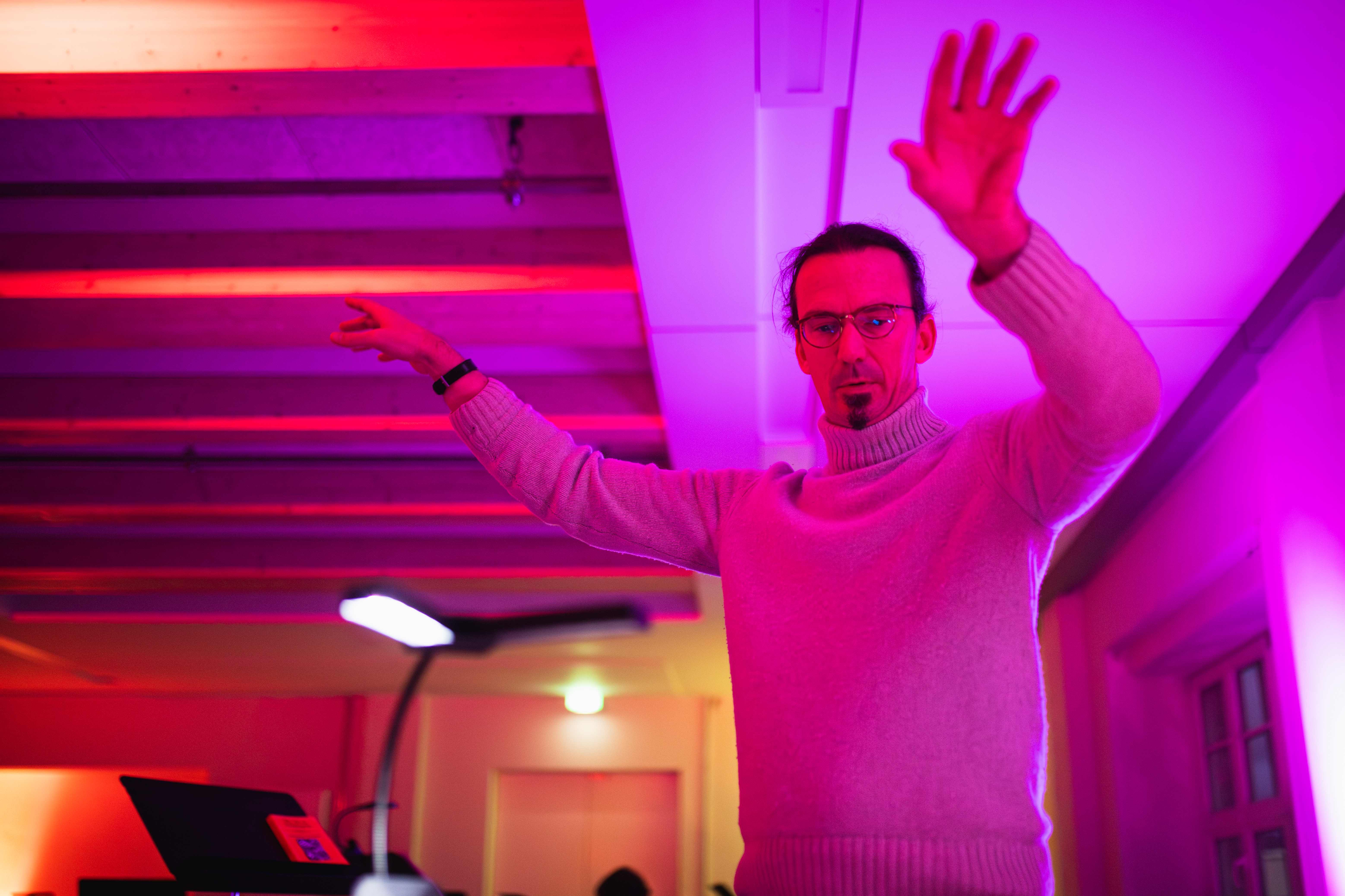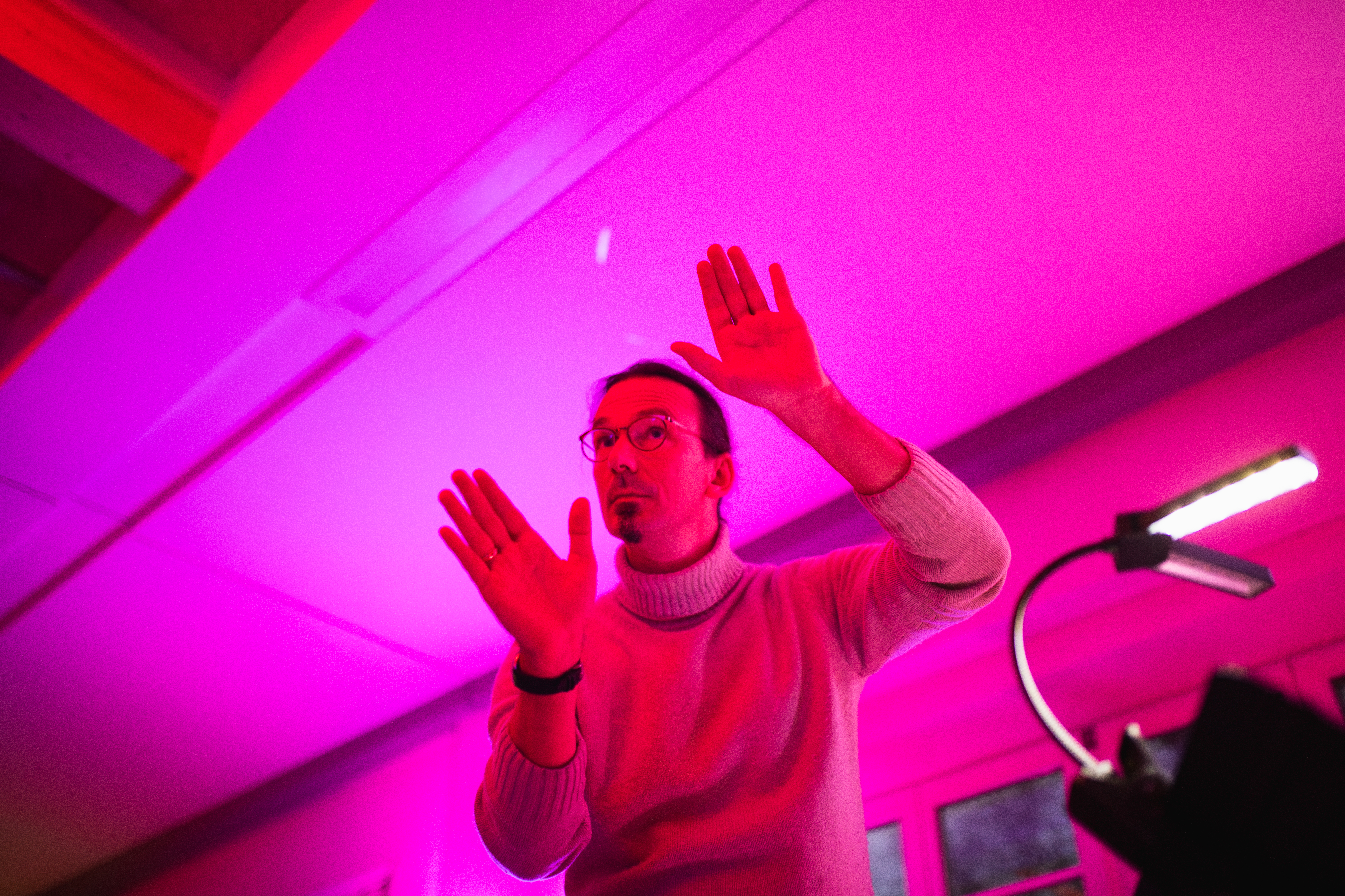 Lennart Dohms conducting El Perro Andaluz at Zentalwerk Dresden in 2024. Photography credit: Heike Antoci
